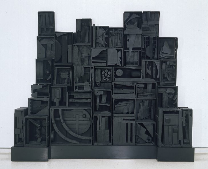 Louise Nevelson (American, born Kiev, Russia [now Ukraine], 1899–1988). Sky Cathedral, 1958. Wood, painted black, 102 1/2 x 133 1/2 inches (260.4 x 339.1 cm). Collection Albright-Knox Art Gallery, Buffalo, New York; George B. and Jenny R. Mathews Fund, 1970 (1970:1a-h). © Estate of Louise Nevelson / Artists Rights Society (ARS), New York