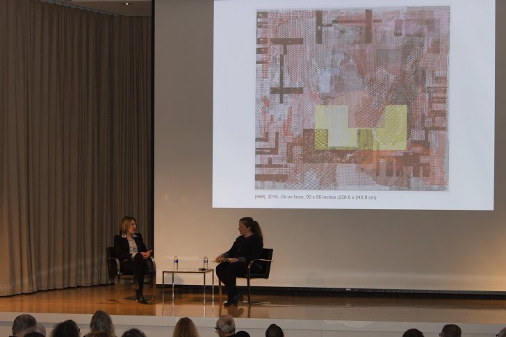 Jacqueline Humphries and Chief Curator Cathleen Chaffee discuss Humphries's work during a Voices in Contemporary Art event on March 14, 2019. Photograph by Tom Loonan.