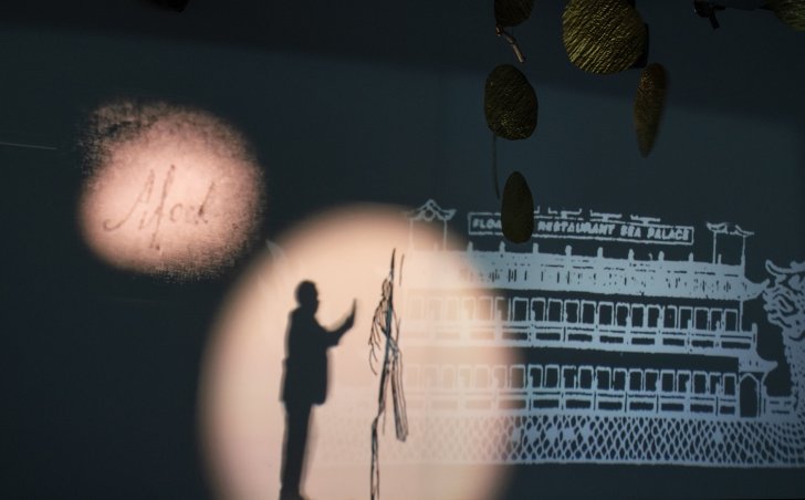 Installation view of Lap-See Lam: Dreamers' Quay, at the Ronnen Glass Box Theater of the Buffalo AKG Art Museum (August 2023–February 2024.) Photo: Brenda Beiger