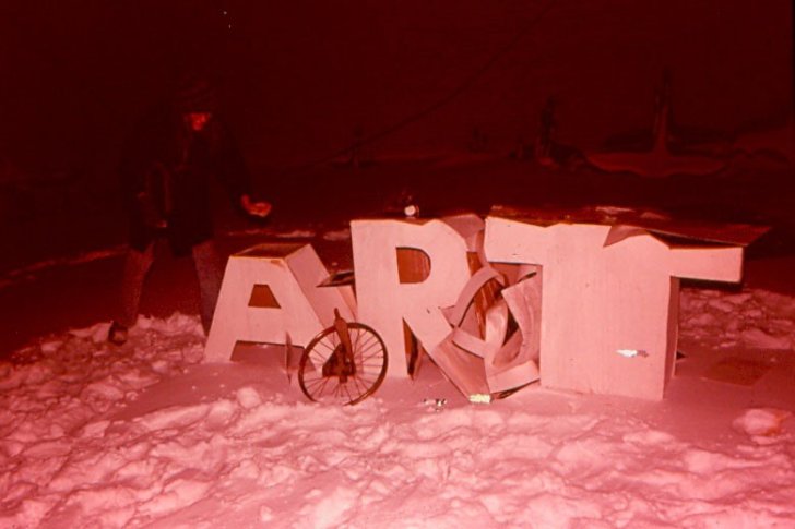 Installation view of the DESTRUCTION OF ARTWORKS on DADA DAY at Hallwalls Contemporary Arts Center, Buffalo, NY, on February 5, 1976. Courtesy of the Hallwalls Contemporary Arts Center Collection, a special collection of the Poetry Collection of the University Libraries, University at Buffalo. Photographer unknown.