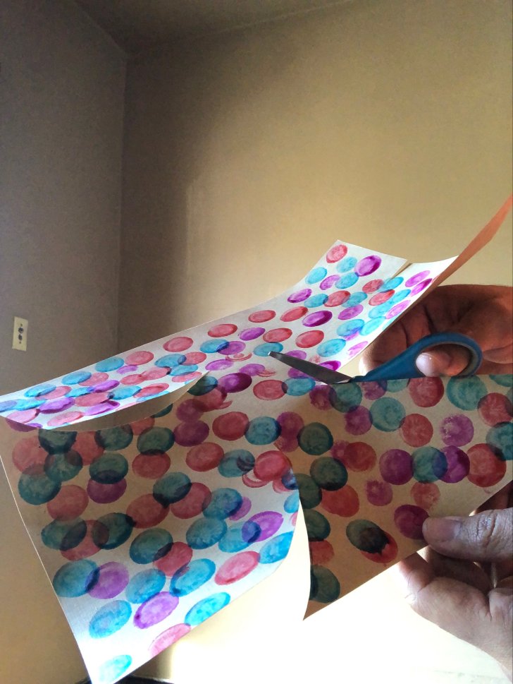 1. Use your coloring materials to create a different pattern—such as dots, lines, squiggles, and shapes—on each piece of paper. Make your patterns vibrant and colorful.