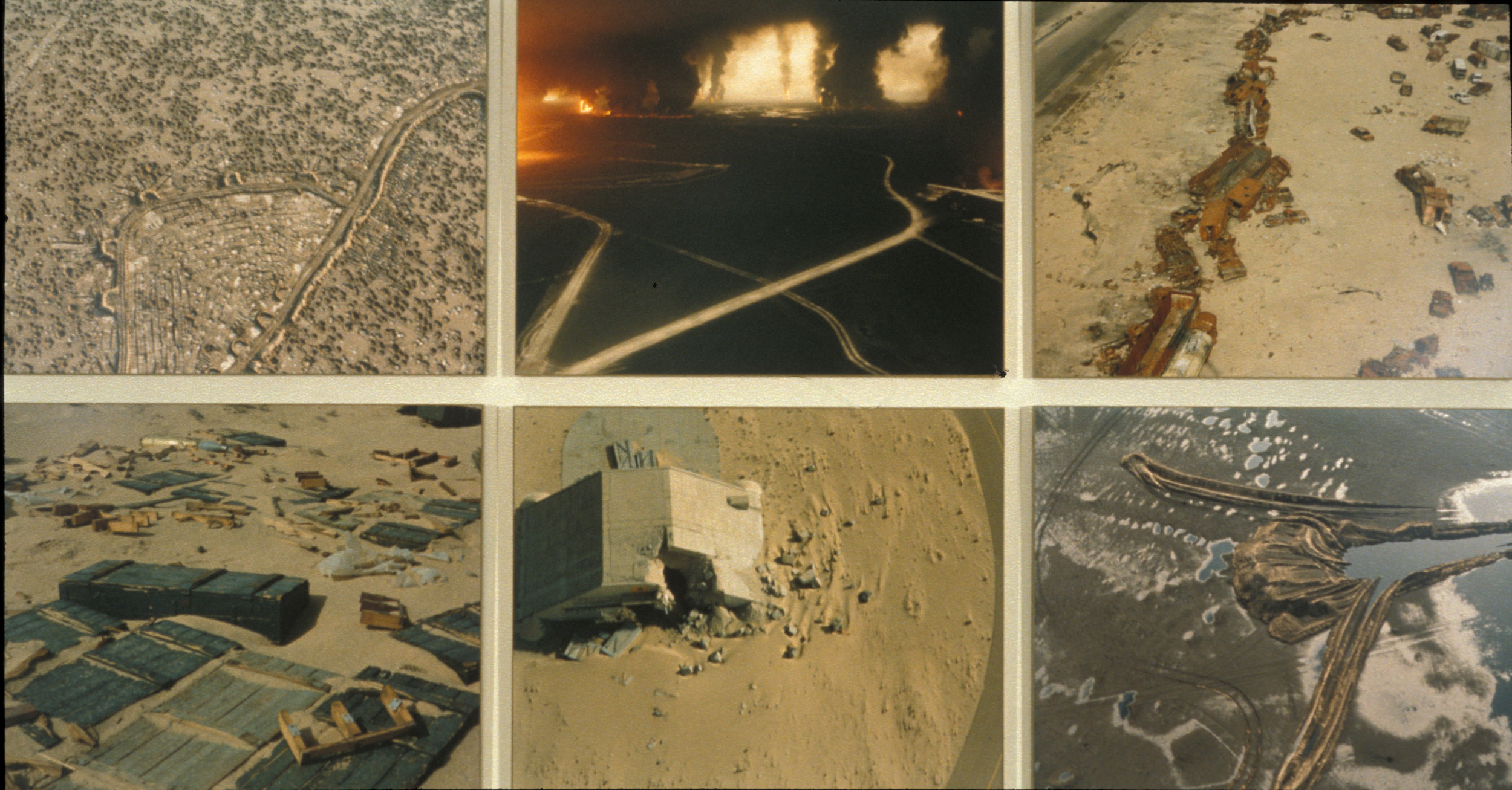 At the end of the Gulf War, Sophie Ristelhueber traveled to Kuwait to record the physical traces of conflict on the landscape. Entitled FAIT, the French word for "fact," the resulting series of photographs depicts trenches and tank tracks, bomb craters, dense smoke rising from blazing oil wells, and battle debris scattered across the sand from aerial and ground-level points of view. While her images at first appear abstract, closer inspection reveals the remnants of an environment transformed by war.