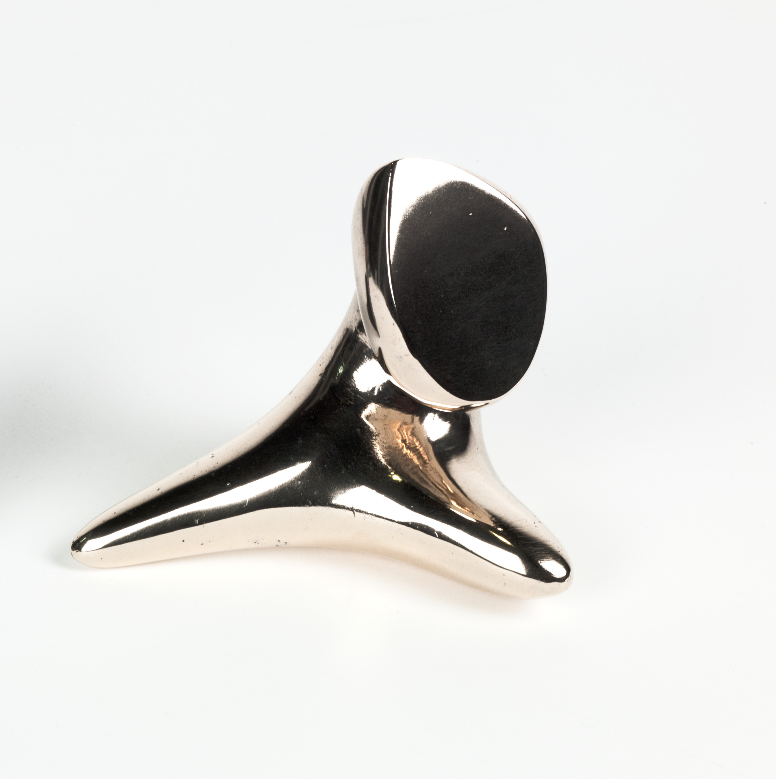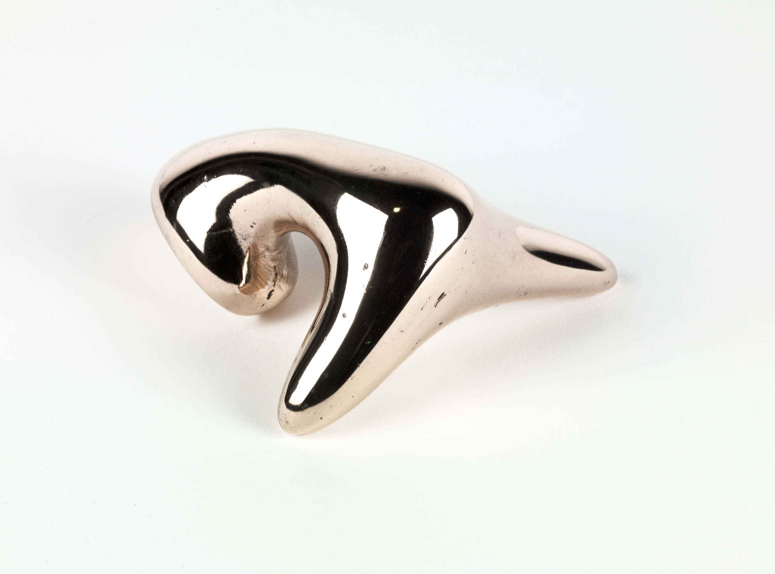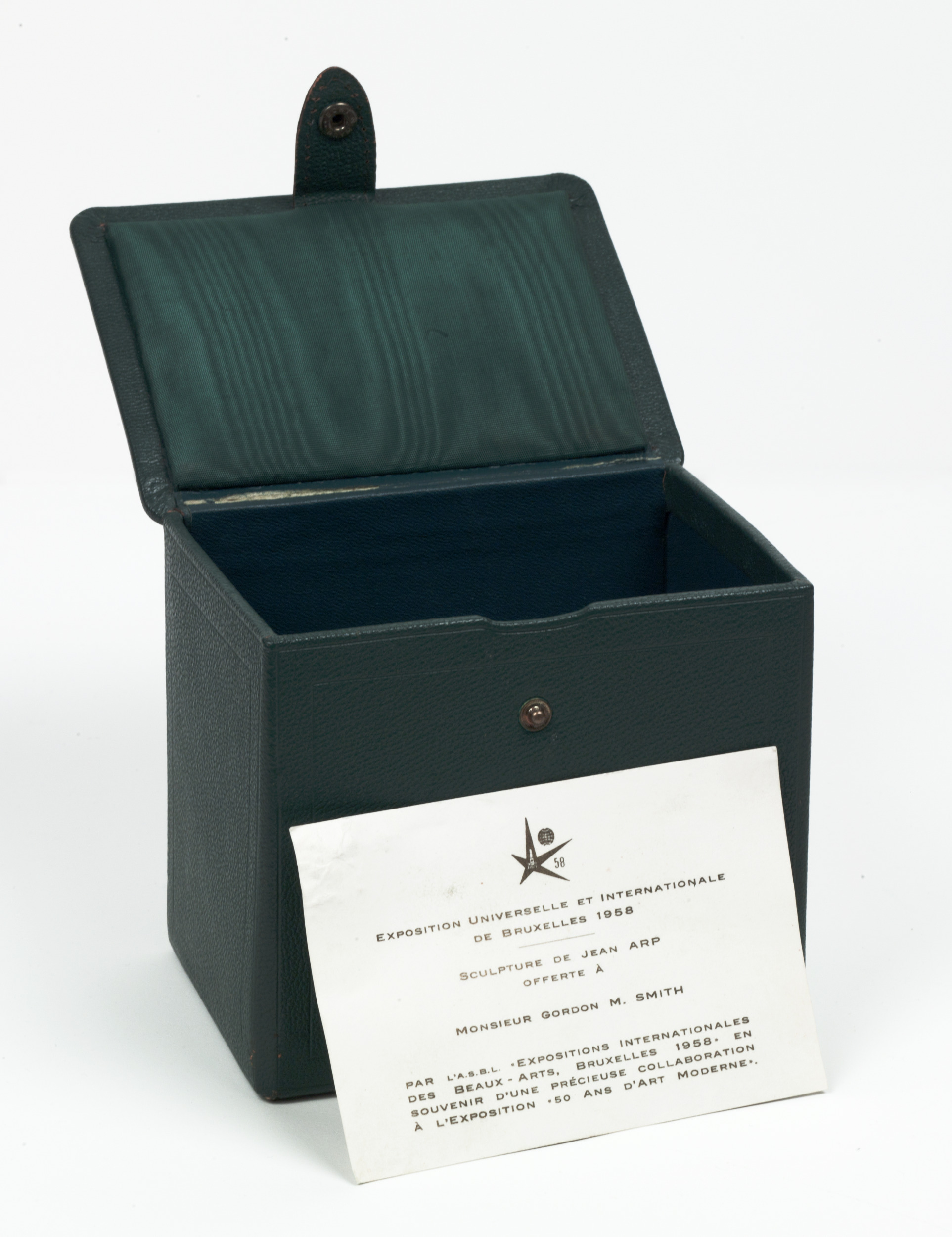 In 1958, the organizers of the Brussels World’s Fair commissioned Jean (Hans) Arp to create a small-scale bronze sculpture. Casts of the sculpture were presented to the individuals who contributed to the success of the Fair’s exhibition 50 ans d’art modern (50 Years of Modern Art), including former Albright-Knox Director Gordon M. Smith. Man Seen by a Flower was one of Smith's prized possessions and was displayed on his desk throughout his tenure at the museum. While small in stature, the sculpture encapsulates all of the qualities of Arp’s major works. Its abstracted, biomorphic form flows from the head of a man to his torso and outstretched legs, and the work bears a notable resemblance to Arp’s Somersault. The element of chance that Arp often explored is also present—there is no definitive way to the view this work, and it can be installed in numerous ways.