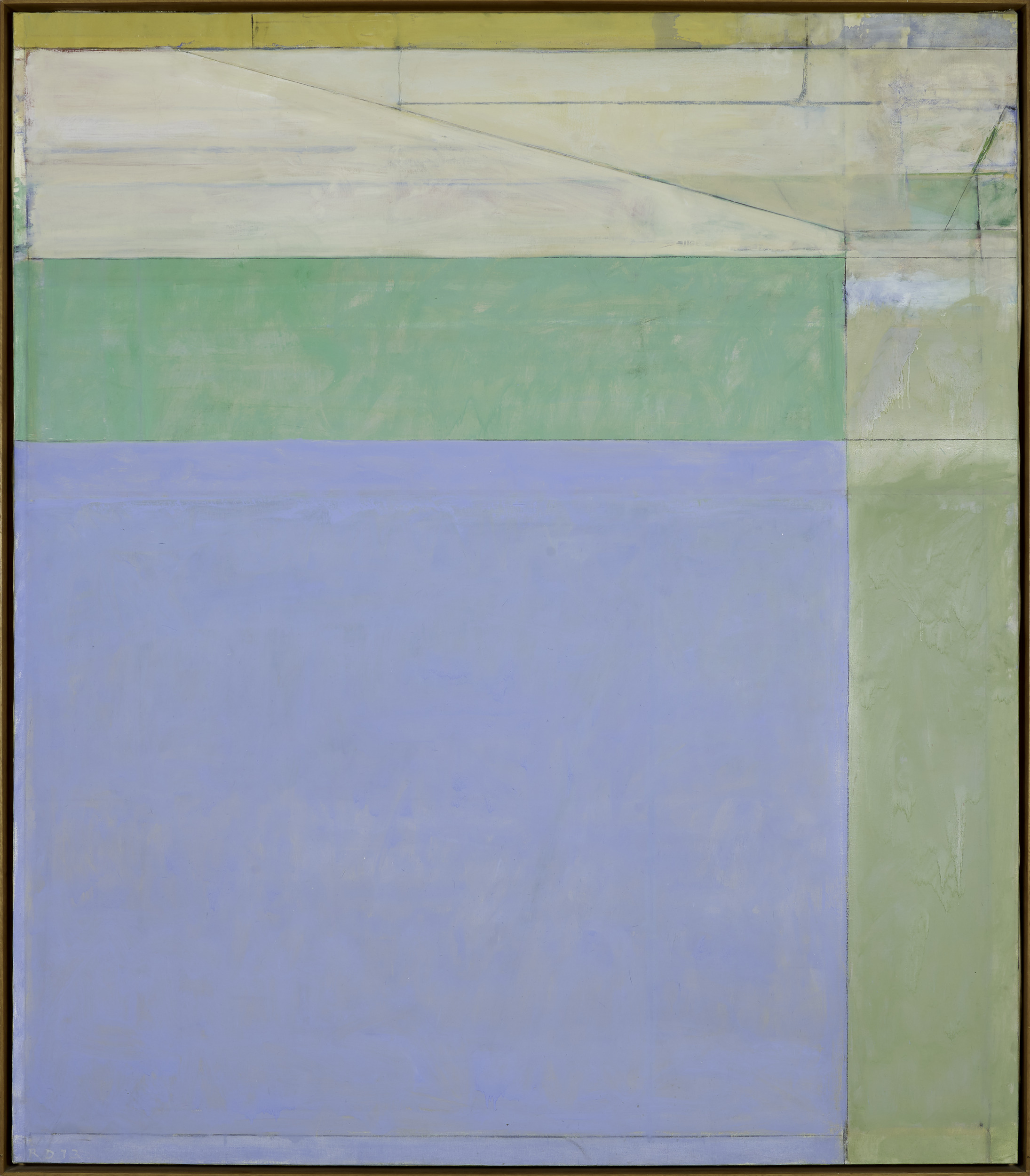 This year marks the 100th birthday of American artist Richard Diebenkorn (1922–1993). In celebration of this centennial, we are spotlighting his critical “Ocean Park” series. In 1955, Diebenkorn ceased exploring abstraction, only to pick it up again eleven years later in 1967 after working in a more representational mode. This course change was prompted, in part, by the artist’s move from northern to southern California. Titled after a beachfront section in Santa Monica where he lived, the “Ocean Park” paintings encompass the hazy light and languid colors of Diebenkorn’s new surroundings. Yet it would be a mistake to interpret a work like Ocean Park No. 66 as only an abstract landscape. Rather, the composition responds to formal and aesthetic concerns and his receptiveness to the environment. In a 1983 letter to the Albright-Knox about recommencing the series, the artist wrote, “My concerns, as before, are with simply making painting yet the work as always is the subject for landscape interpretation. This has ceased to bother me.”