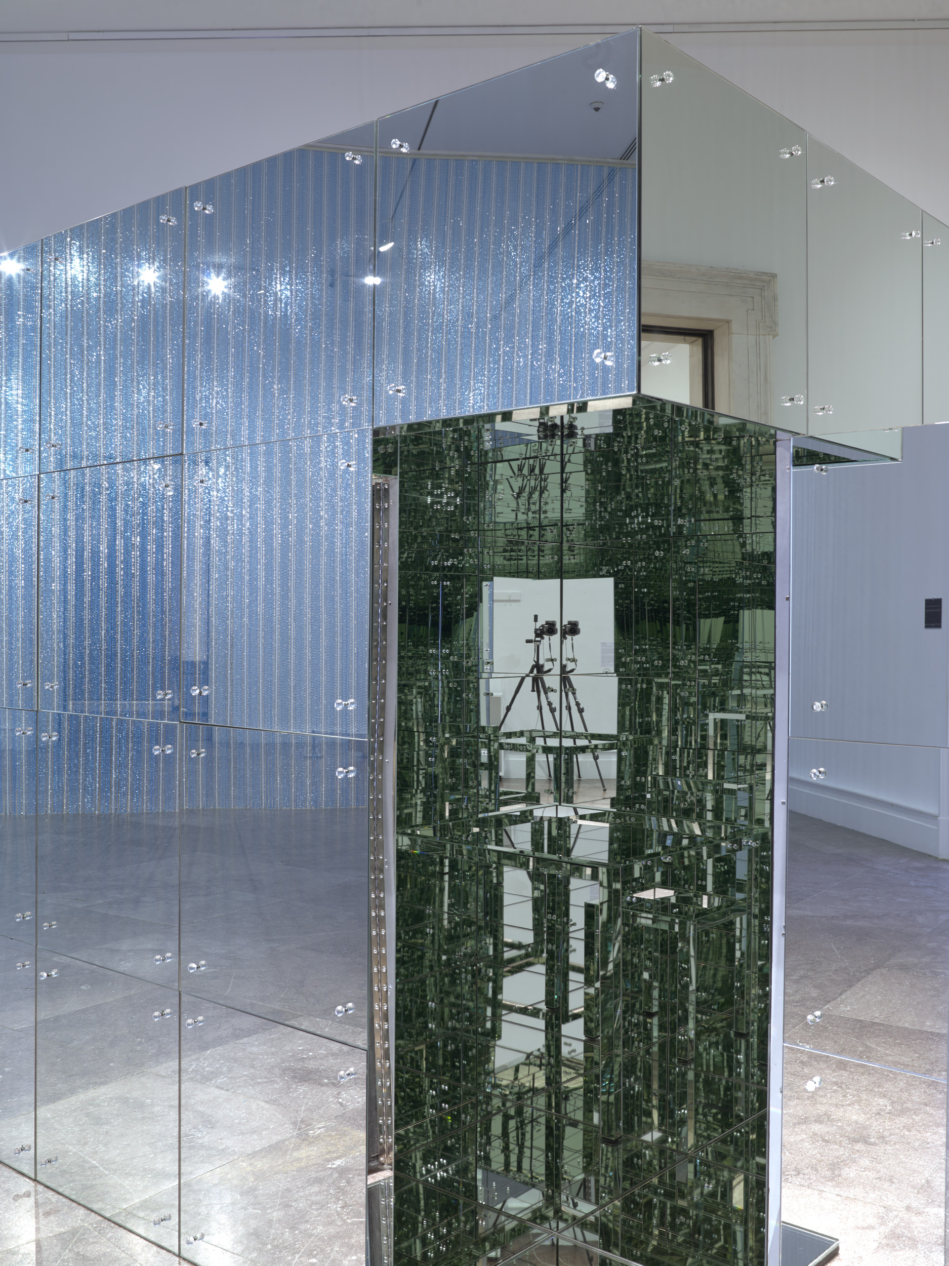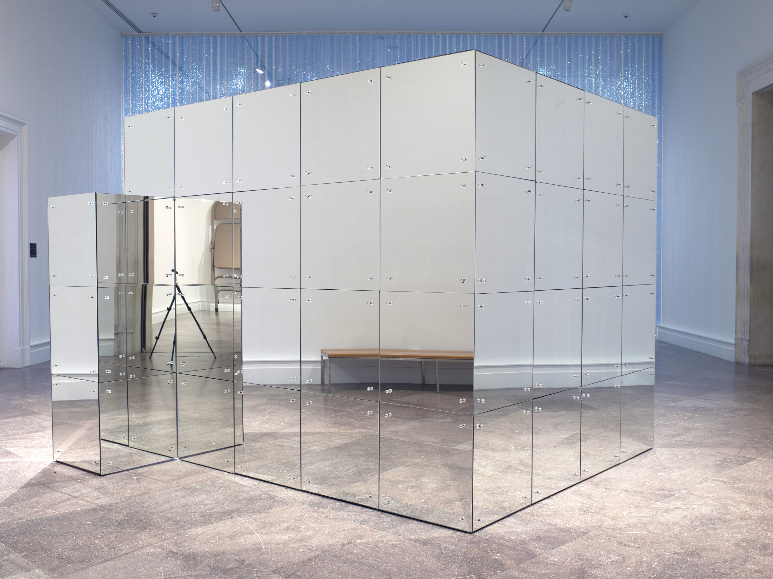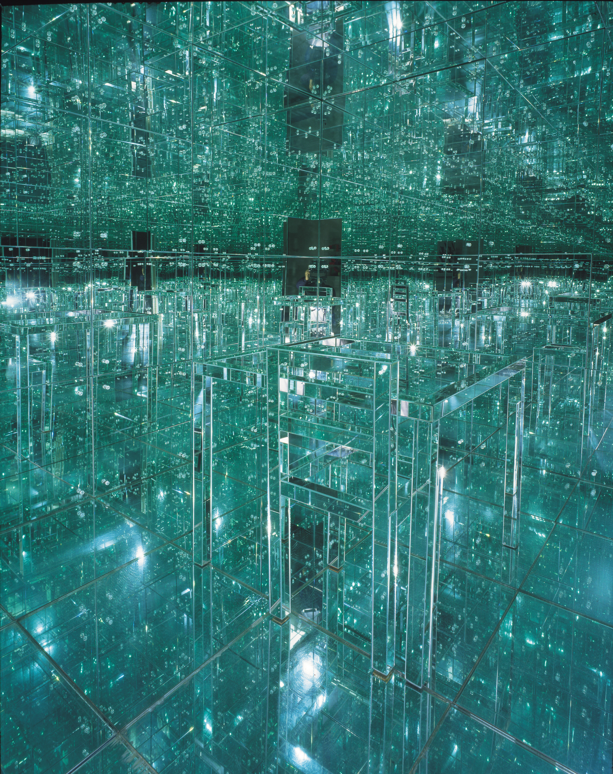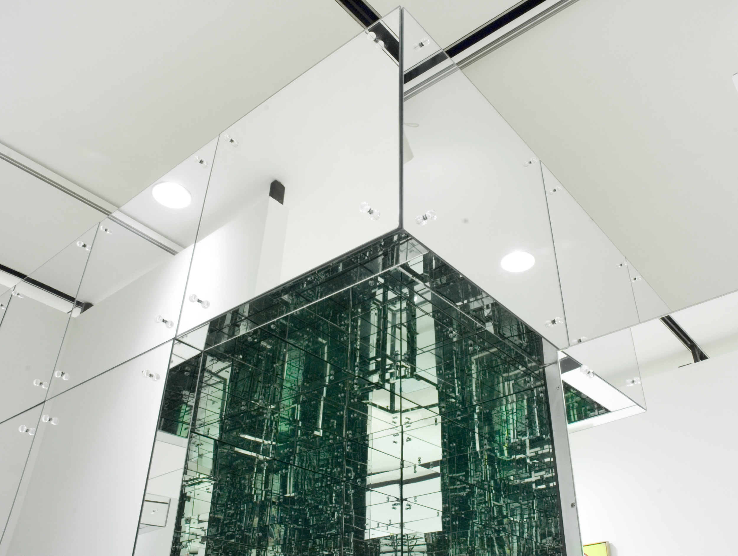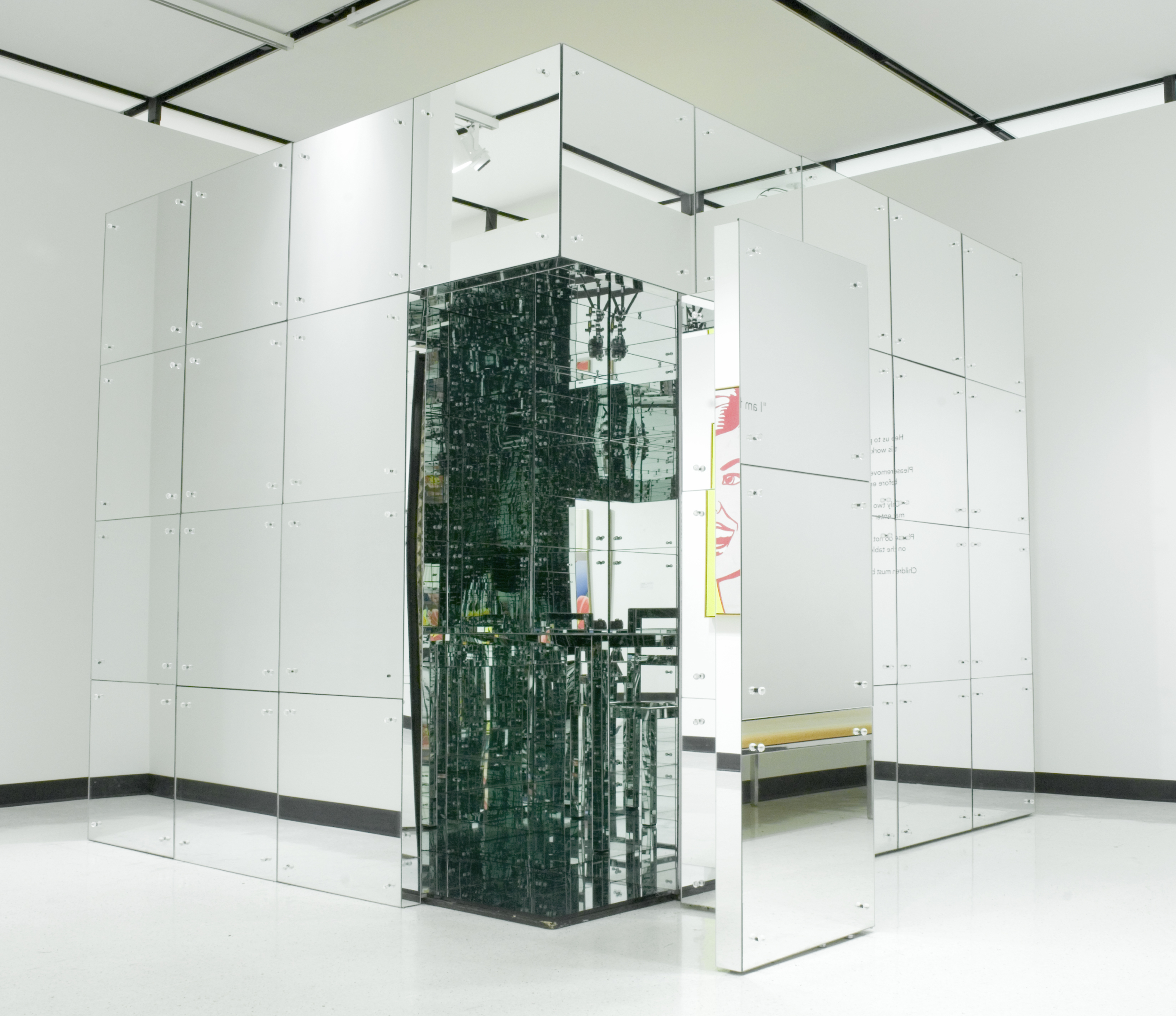 In the Mirrored Room, Samaras created a space in which the only images are “drawn” by the reflections of visitors. He later wrote that with this work he was engaging with the entire history of mirrors, from their appearance in fairy tales to fun houses. He felt the end result created “a space, an environment, a fantasy, a world of artificiality, a complicated panorama.” He continued: “Being imbedded in this huge crystalline structure that has no top, bottom, or sides, this feeling of suspension, this feeling of polite claustrophobia or acrophobia, this feeling of fakery or loneliness seems complex, associatively enveloping and valid to me as a work of art, wonder, sensuality, pessimistic theory, and partial invisibility.”