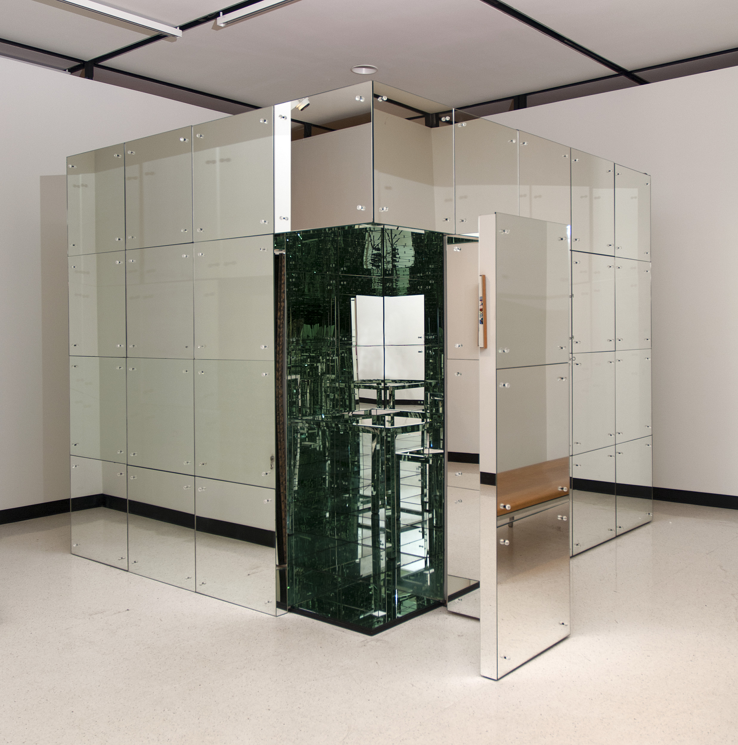 The idea for the Mirrored Room came to Samaras as early as 1963, when he was writing a short story entitled “Killman.” His title character lived in a mirrored house surrounded by endless reflections and repetitions of himself. As Samaras described it, “On one wall was a . . . box which upon opening revealed jeweled parts of a man, a mirror inside, mirror outside box, and an x-ray machine.”
