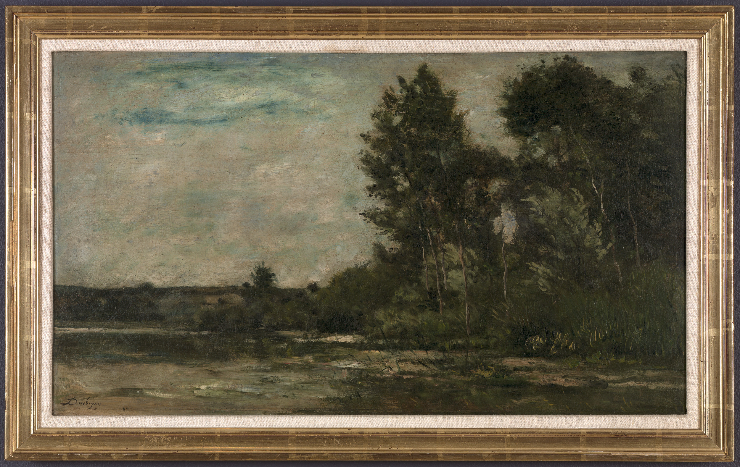 In the 1850s and 1860s, prior to the establishment of Impressionism, Barbizon School painter Charles François Daubigny approached the landscape from a new perspective. He lived and worked on the rivers of northern France in his floating boathouse studio. Thus, surrounded by water, he established a vantage point from inside of his compositions. Daubigny’s emphasis on painting outdoors to observe changing weather conditions and light prefigures key interests of later Impressionist painters. He was a mentor and friend to Camille Pissarro and Claude Monet, whom he met in London in 1870. Despite his pivotal role in shaping the history of Impressionism, Daubigny was never widely celebrated as an artist during his time. The sketch-like works he submitted to the annual Salon were routinely assailed and dismissed by critics as “mere impressions.”