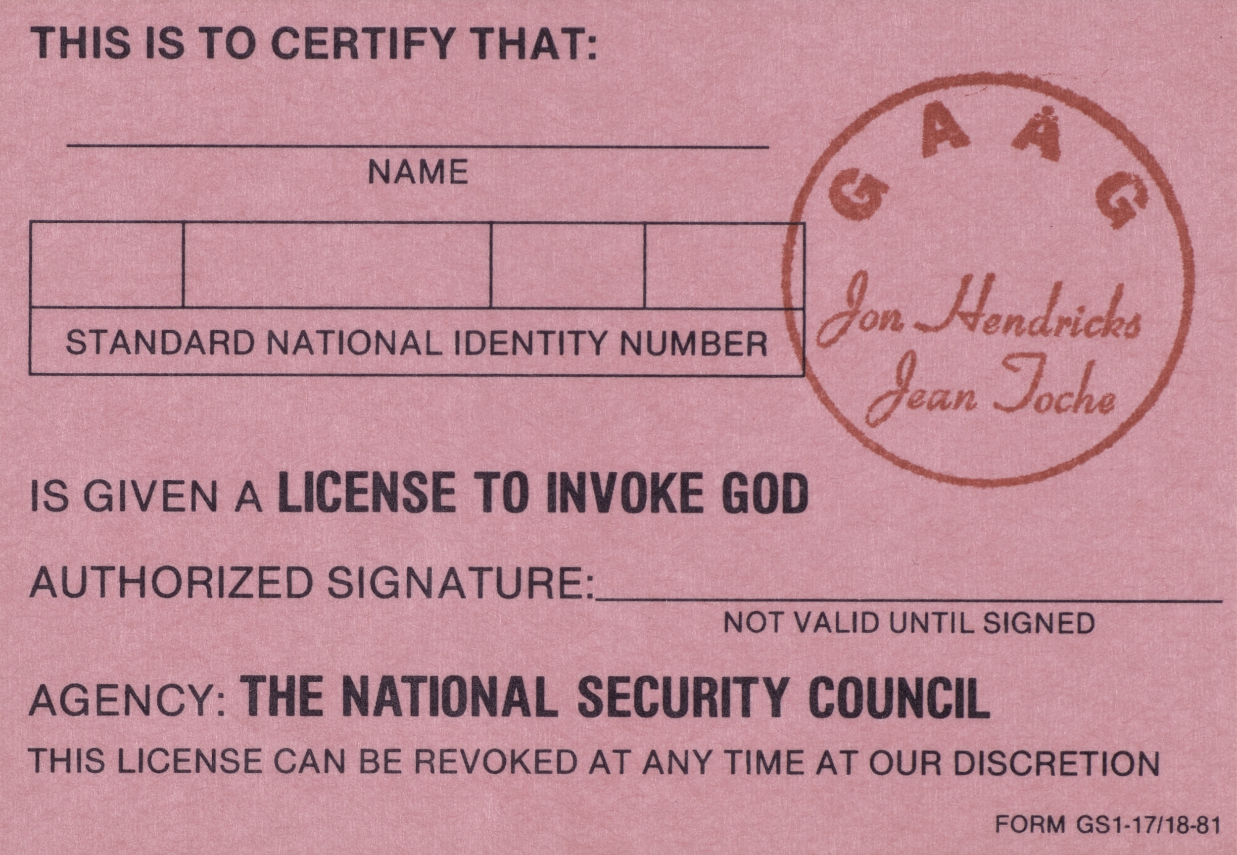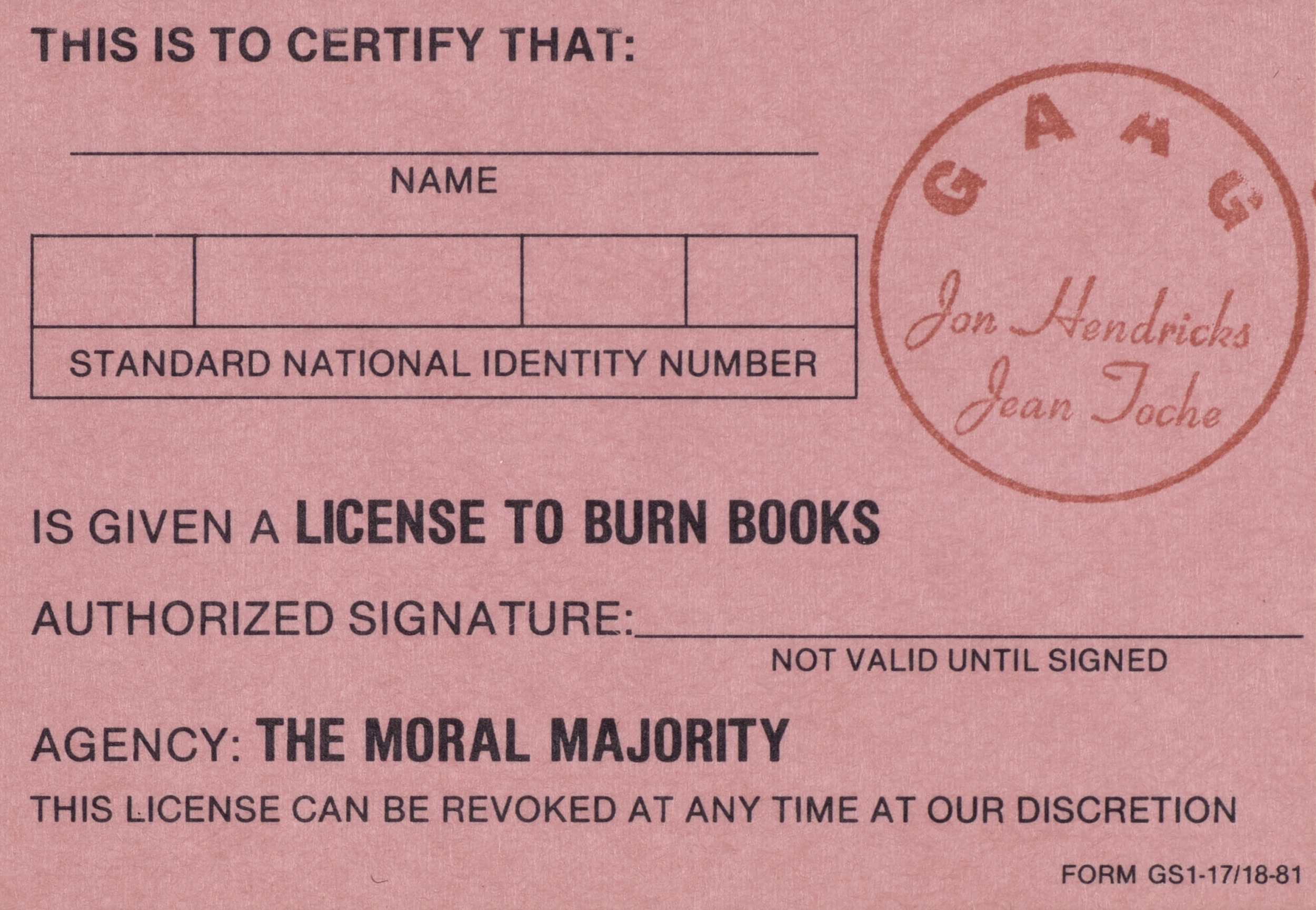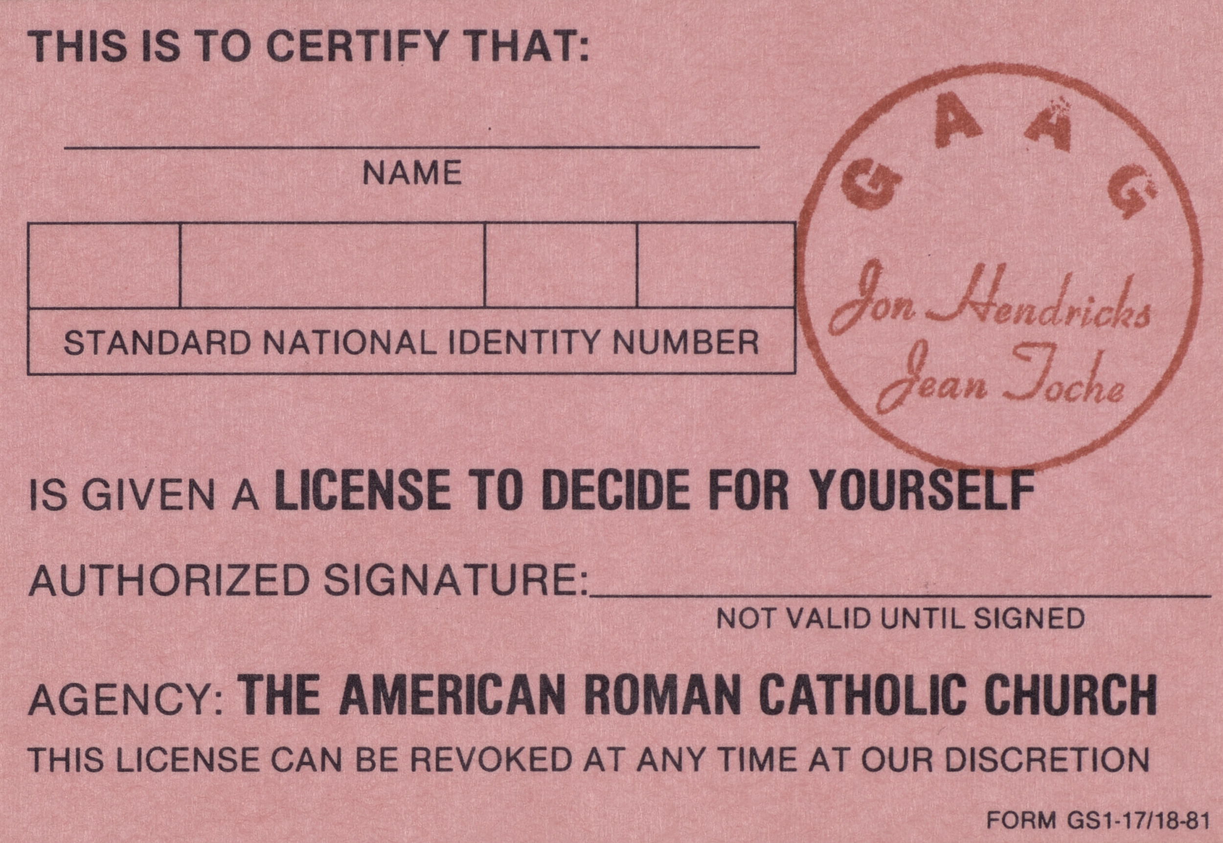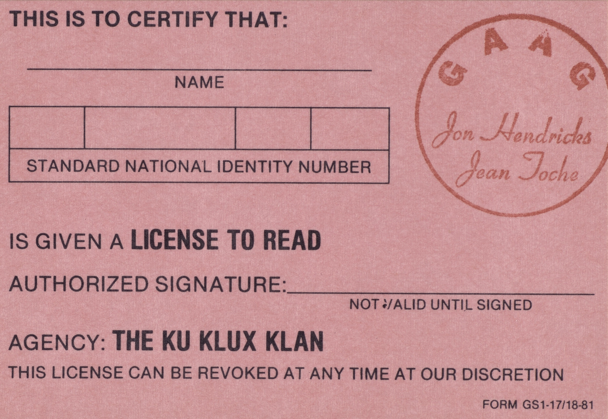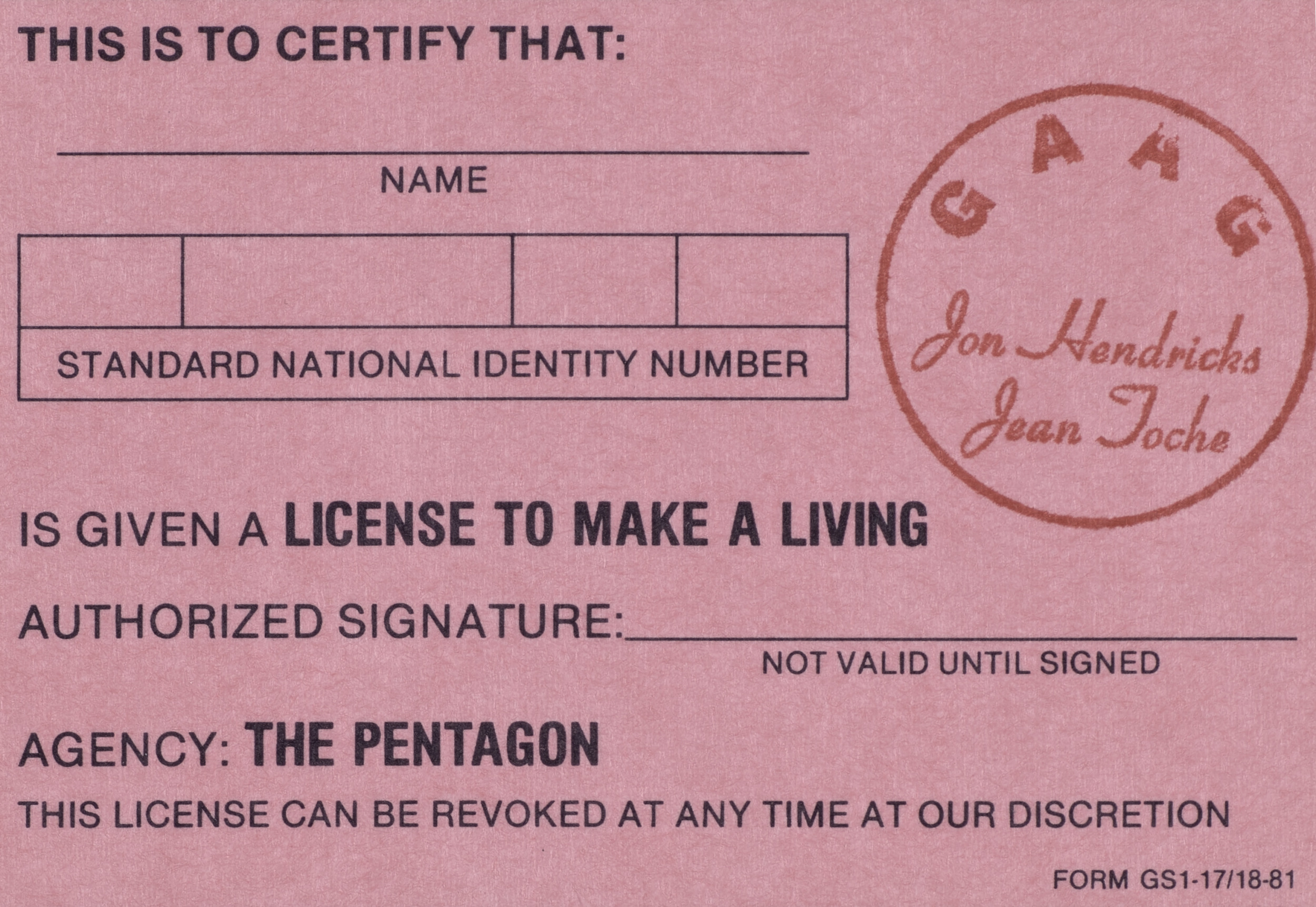 Untitled (License Certificates), 1981