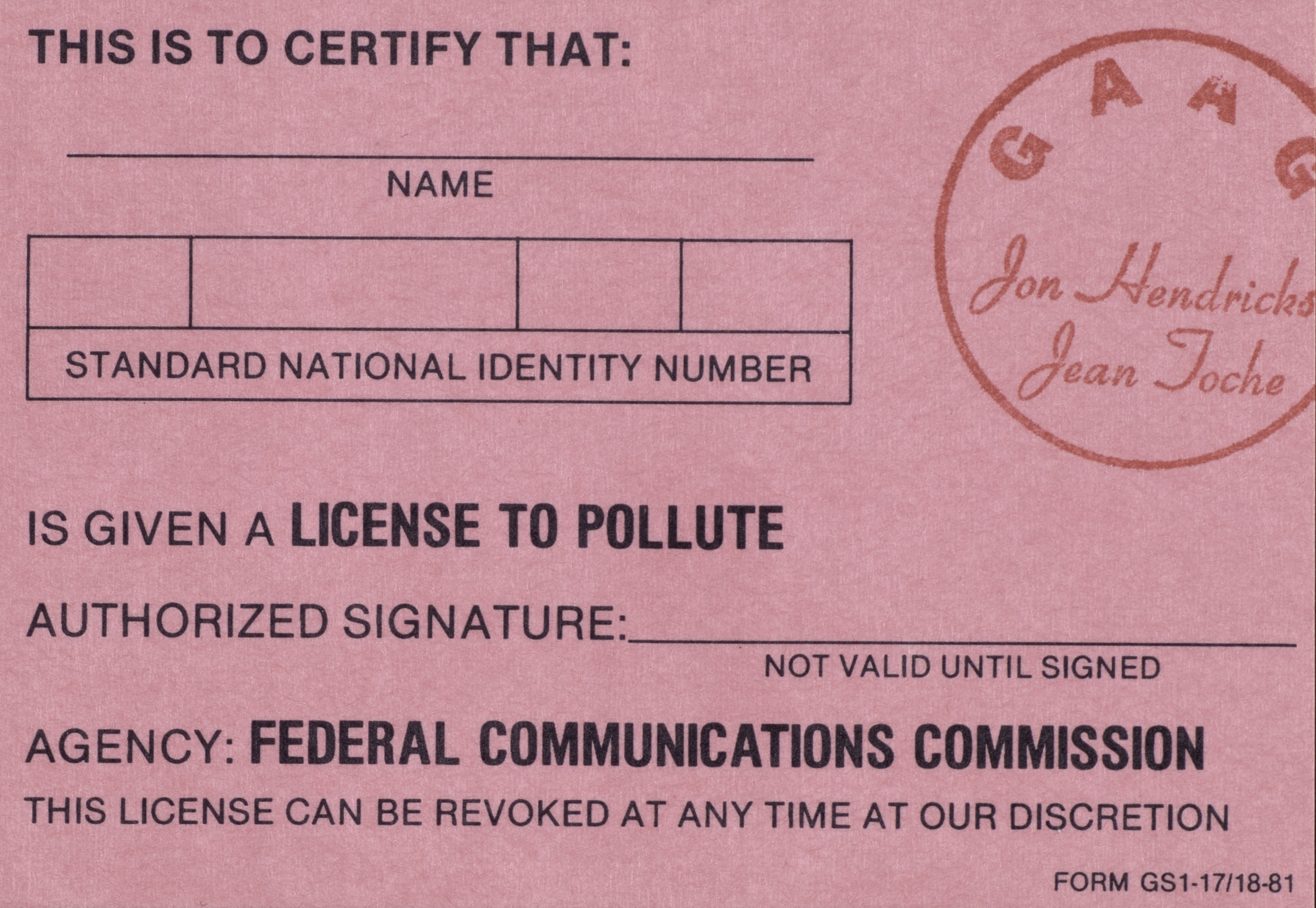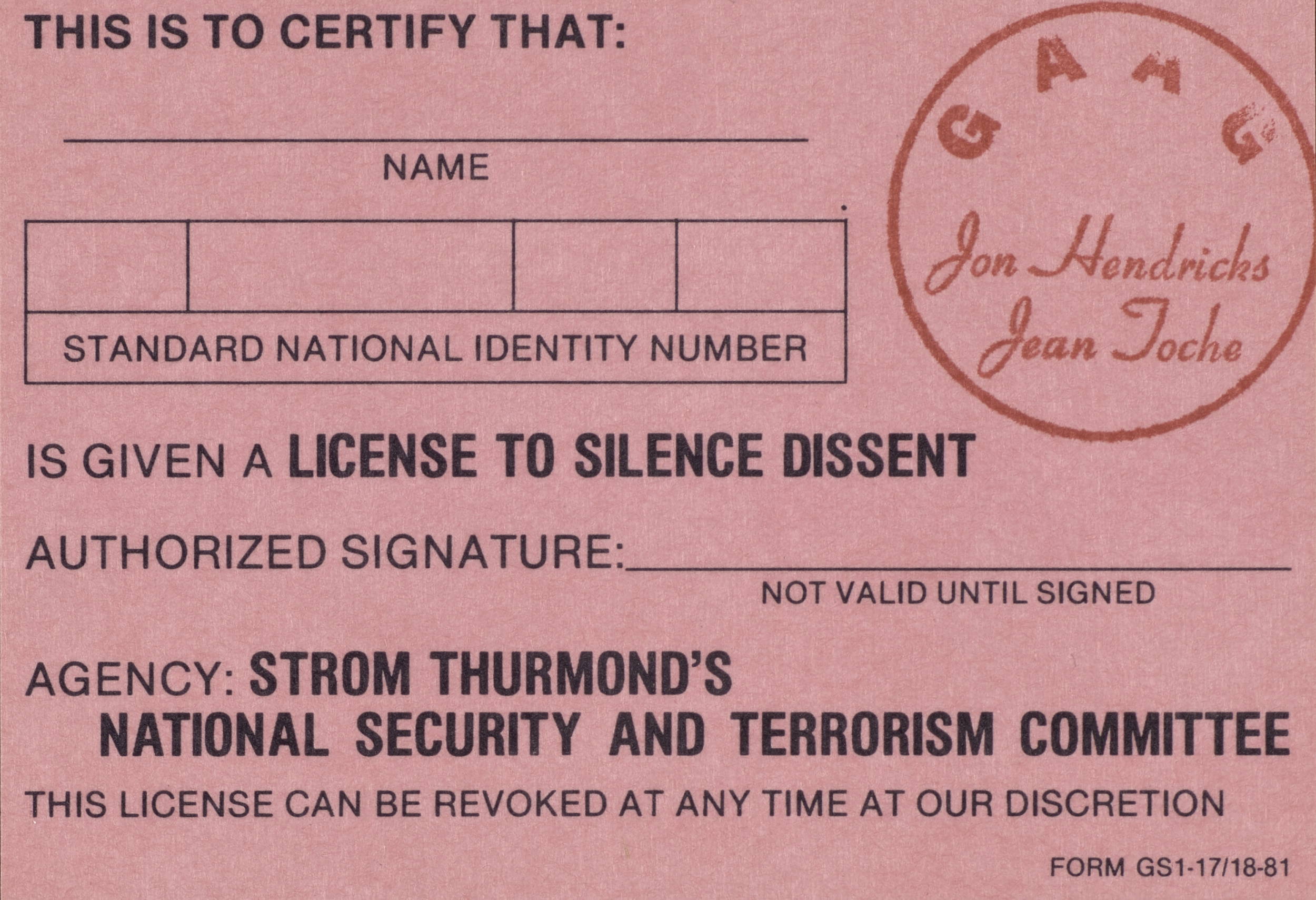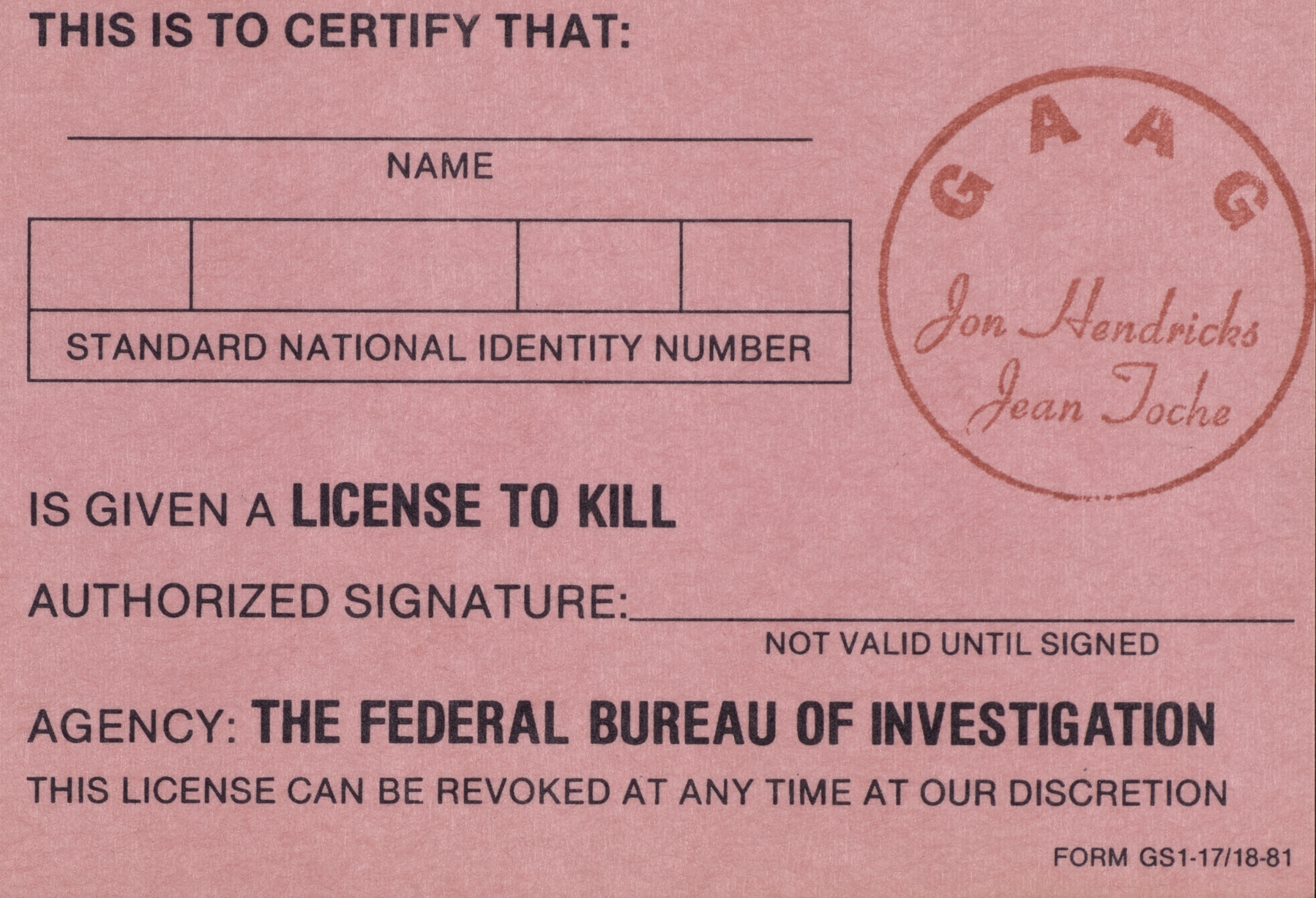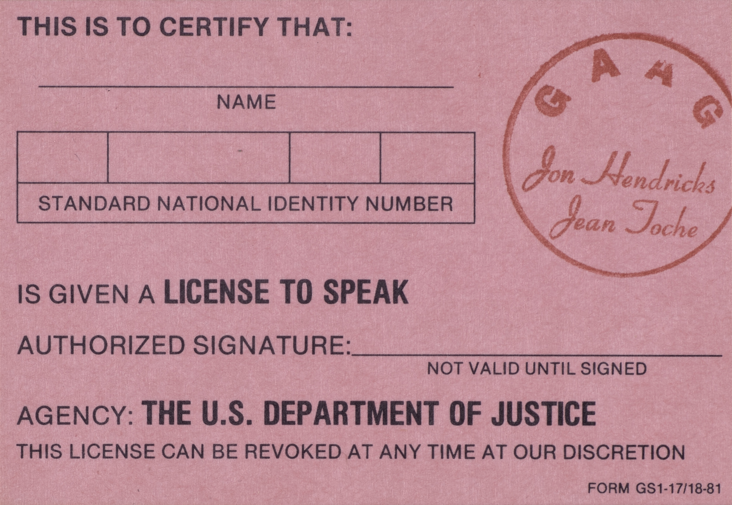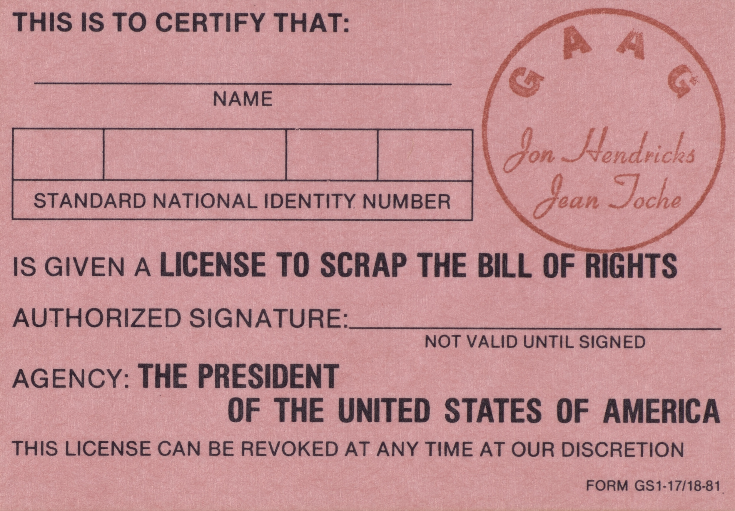 Untitled (License Certificates), 1981