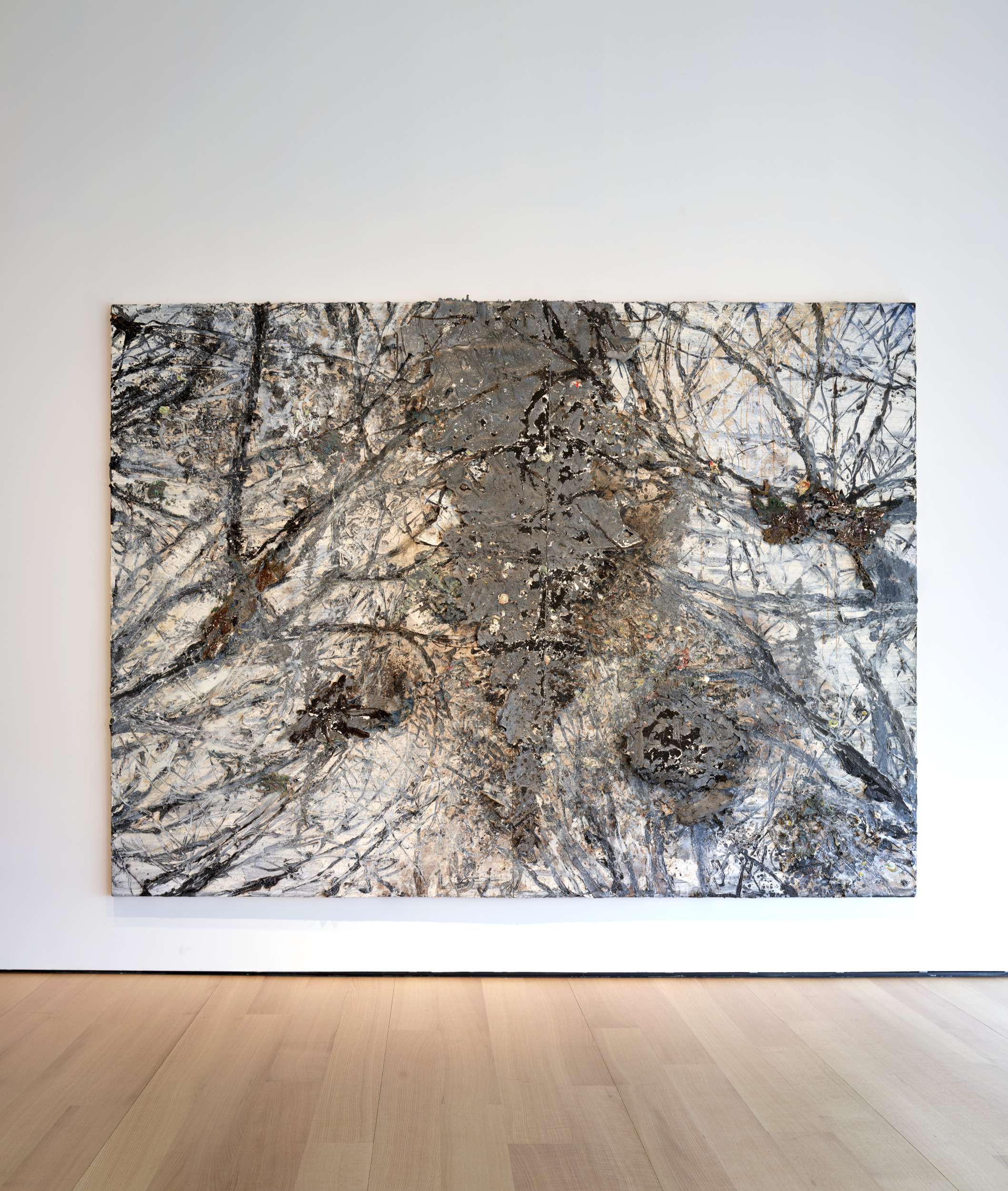 emulsion, oil, acrylic, shellac, lead and charcoal on canvas