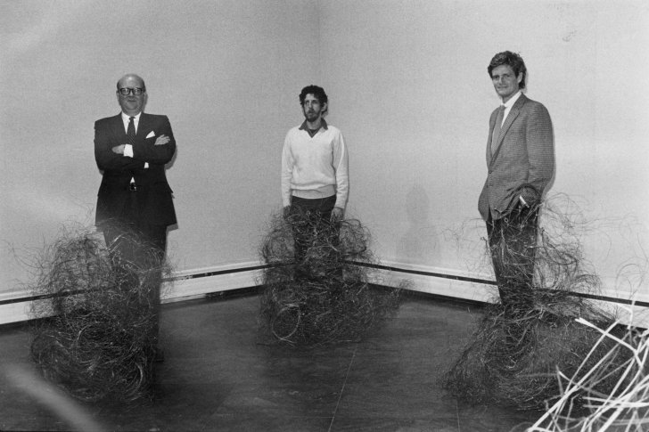 Albright-Knox Director Robert T. Buck, Jr., artist Alan Saret, and Steve Reichard at the Members' Preview for Alan Saret on January 28, 1983. Image courtesy of the Albright-Knox Art Gallery Digital Assets Collection and Archives, Buffalo, New York.