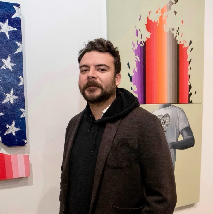 Alejandro Macias, nacido en 1987, en Brownsville, Texas, crea obras que reflejan la división que sintió al vivir junto a la frontera entre México y Estados Unidos. Macias desafía los acercamientos tanto tradicionales como contemporáneos al usar arte multimedia, figurativo y abstracto para captar la dualidad de su identidad. Ha sido artista residente en el Vermont Studio Center, Johnson; el Château d’Orquevaux, Francia, y The Studios del Massachusetts Museum of Contemporary Art, North Adams. Recibió el Lehmann Emerging Artist Award, que ofrecía una exposición dual en el Phoenix Art Museum, y ha tenido muestras individuales en el Louise Hopkins Underwood Center for the Arts, Lubbock, Texas, y la Presa House Gallery, San Antonio. Actualmente es profesor asociado de pintura y dibujo en la University of Arizona School of Art en Tucson, donde vive y trabaja.