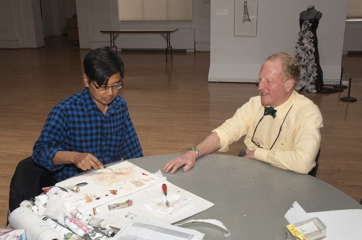 Byron Kim (left) working on Synecdoche, 2008, with Buffalo Fine Arts Academy Board Member Charles E. Balbach, 2008. Photograph by Tom Loonan.