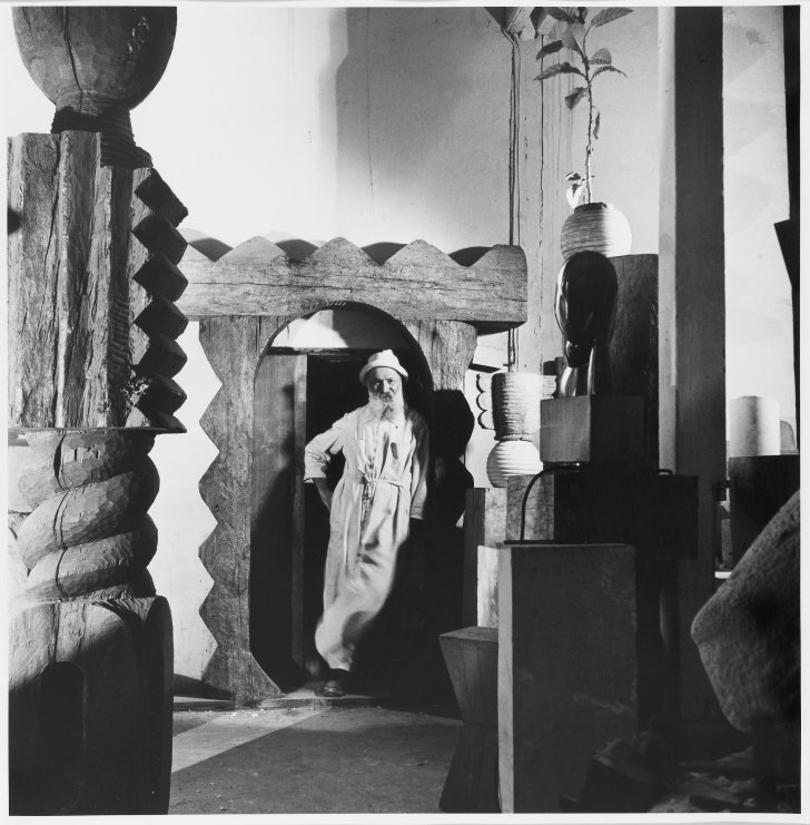 Wayne Miller (American, 1918-2013). Constantin Brancusi, Paris, 1955. Gelatin silver print, sheet: 10 1/2 x 10 1/4 inches (26.7 x 26.1 cm). Collection Albright-Knox Art Gallery, Buffalo, New York; Gift of Seymour H. Knox, Jr., 1976 (K1976:4.34). © 1955 Estate of Wayne Miller