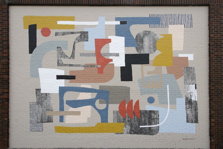 Ellen Rutt's mural Open and Voluntary Membership. Democratic Member Control. Members' Economic Participation. Autonomy and Independence. Education, Training, and Information. Cooperation Among Cooperatives. Concern for Community., part of the Cobblestone Commons mural project. Photograph by Tom Loonan.