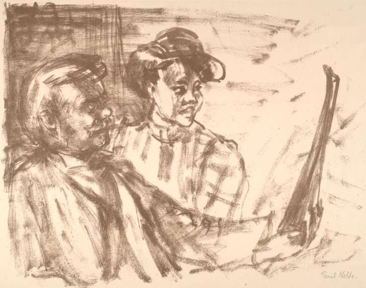 Emil Nolde (German, 1867-1956). Self Portrait with Mrs. Nolde, not dated. Lithograph, 14 x 18 inches (35.6 x 45.8 cm). Collection Albright-Knox Art Gallery, Buffalo, New York; Gift of A. Conger Goodyear, by exchange, 1949 (P1949:30).