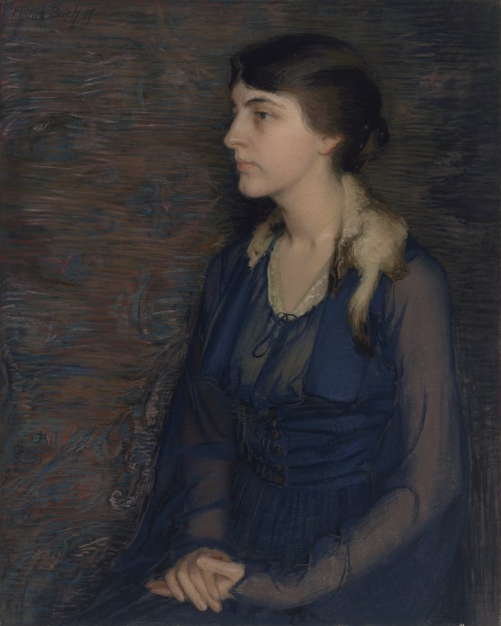 Florence Julia Bach (American, 1887–1978). Portrait of Evelyn Christie Phelps Murnan, 1917. Oil and pastel on canvas, 35 1/4 x 28 inches (89.5 x 71.1 cm). Collection Albright-Knox Art Gallery, Buffalo, New York; Gift of Colonel Charles Clifton, 1917 (1917:2). © Estate of Florence Julia Bach