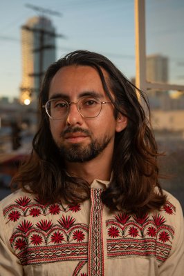 Francisco Palomares nació en 1990 y es parte de la primera generación de una familia mexicana en Estados Unidos. Su profundo aprecio por el arte surgió al observar los coloridos murales creados por artistas chicanos en su barrio, en el este de Los Ángeles, donde todavía vive. Con su trabajo reinventa las calles de la ciudad e invita a los espec-tadores a unirse a él en un viaje narrativo. Las obras de Palomares se han exhibido en diversas galerías y museos, como The Cheech Marin Center for Chicano Art and Culture, en Riverside, California; el Mingei International Museum, San Diego, y el Consulado General de México en Los Ángeles. Fue seleccionado para participar en el concurso L.A. Lakers’ In the Paint. Su obra ha aparecido en medios de comunicación como Telemundo, Spectrum News y The Los Angeles Times.