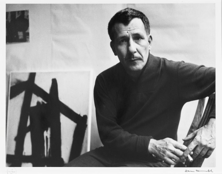 Hans Namuth (American, born Germany, 1915-1990). Franz Kline, New York, 1954. Gelatin silver print, sheet: 10 1/2 x 13 1/2 inches (26.7 x 34.3 cm). Collection Albright-Knox Art Gallery, Buffalo, New York; Gift of Seymour H. Knox, Jr., 1976 (K1976:4.50). © Estate of Hans Namuth