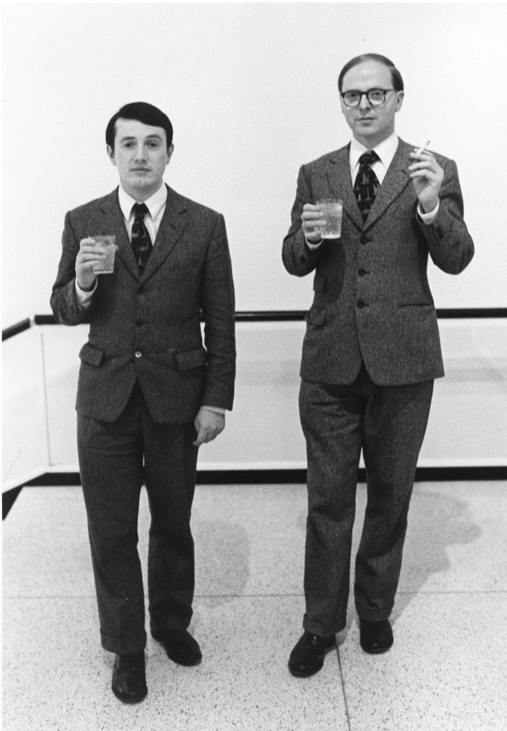 Artists Gilbert and George at the opening of Gilbert and George: The General Jungle or Carrying on Sculpting on April 1, 1976. Image courtesy of the Albright-Knox Art Gallery Digital Assets Collection and Archives, Buffalo, New York.
