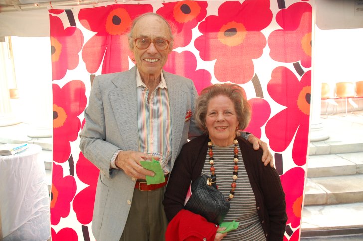 Harvey Breverman (left) with his wife at Collision, an event celebrating the special exhibition Wish You Were Here: The Buffalo Avant-garde in the 1970s, which included Breverman's work. Photograph by Tom Loonan.