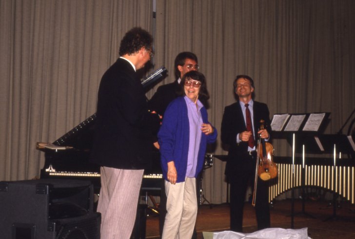 Artist Joan Mitchell at the concert "Flowers for Joan Mitchell" on September 18, 1988. Image courtesy Albright-Knox Art Gallery Digital Assets and Archives Collections.
