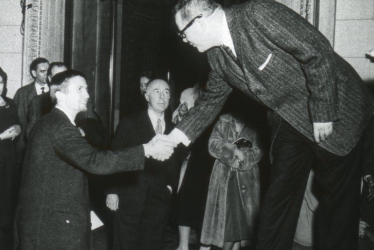 Artist John E. Drummer receiving the 1st place award at the Members' Reception for In Western New York 1959 on February 4, 1959. Image courtesy of the Albright-Knox Art Gallery Digital Assets Collection and Archives, Buffalo, New York.