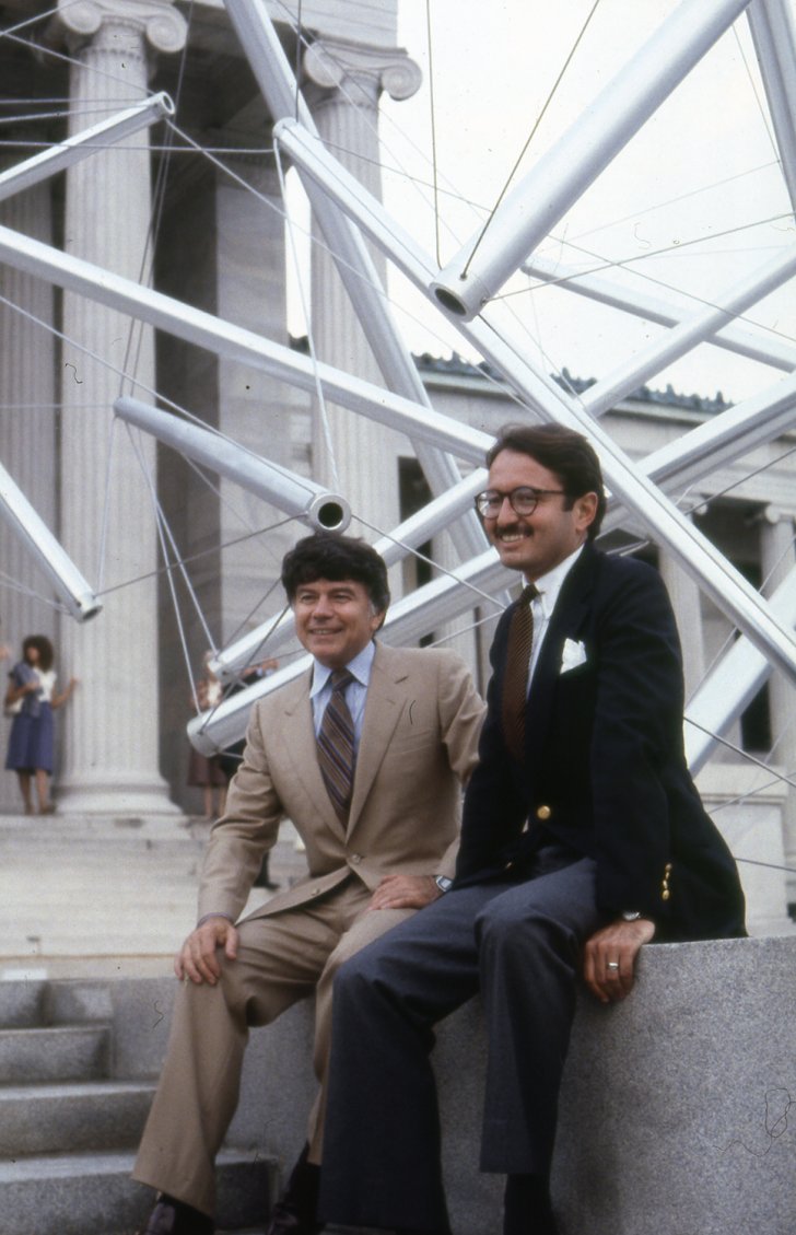 Kenneth Snelson and former Albright-Knox Chief Curator (and later Director) Douglas G. Schultz in front of one of Snelson's works in the 1981 exhibition Kenneth Snelson.