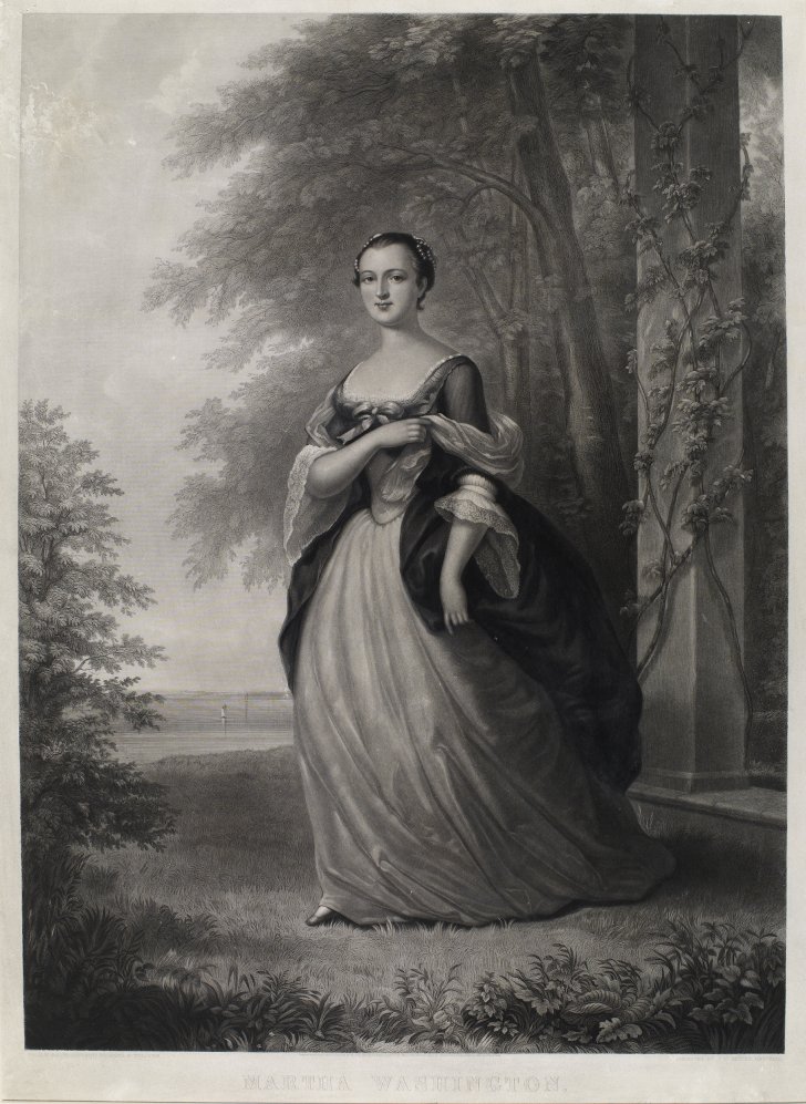 John Chester Buttre (American, 1821–1893) after John Wollaston the younger (British, active 1736–1775). Portrait of Martha Washington, 1863. Engraving, 28 3/8 x 22 inches (72.1 x 55.9 cm). Collection Albright-Knox Art Gallery, Buffalo, New York; Gift of William A. Galpin, 1909 (1909:8).