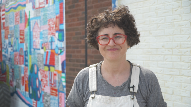 Miriam Singer was raised in Buffalo and now lives in Philadelphia. Singer uses a combination of printmaking and drawing to create her unique works on paper and designs for public art projects. Selected public artworks include projects for St. Andrews School in Middletown, Delaware (2020), and in Philadelphia, University City Arts League (2019), Navy Yard Transit’s fleet of buses in Philadelphia (2018), and Park Towne Place apartments (2017). Singer currently teaches printmaking at Fleisher Art Memorial in Philadelphia and is a member of the artist collective Space 1026.
