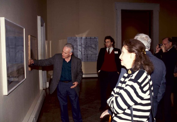 Moshe Kupferman gives a tour of his exhibition Moshe Kupferman: Between Oblivion & Remembrance on January 17, 1992. Photograph by Tom Loonan.