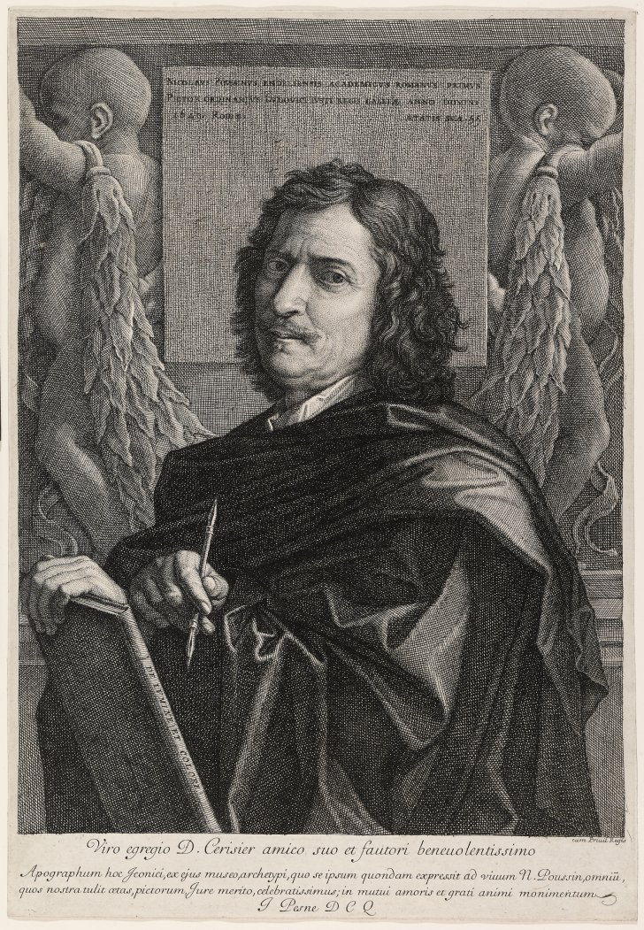 Jean Pesne (French, 1623-1700) after Nicolas Poussin (French, active in Italy, 1594-1665). Portrait of Nicolas Poussin, 1649. Engraving, edition: 1st state, 14 1/8 x 9 3/4 inches (35.9 x 24.8 cm). Collection Albright-Knox Art Gallery, Buffalo, New York; Gift of Willis O. Chapin, 1891 (1891:4.160).
