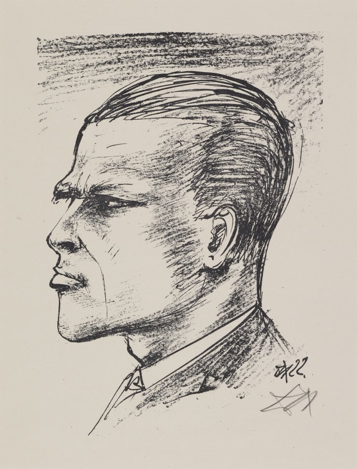 Otto Dix (German, 1891-1969). Self Portrait in Profile, 1922. Lithograph, 15 x 11 1/4 inches (38.1 x 28.6 cm). Collection Albright-Knox Art Gallery, Buffalo, New York; Gift of Frederic P. Norton, 1999 (P1999:6.136). © Estate of Otto Dix / Artists Rights Society (ARS), New York / VG Bild-Kunst, Germany