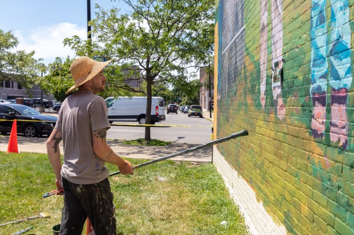 Pat Perry (American, born 1991) is a multi-disciplinary artist whose practice includes painting, drawing, photography, and large-scale outdoor murals he has painted around the world. He is often described as an “adventurer” and has been likened in the past to Jack Kerouac due to his itinerant lifestyle. He has crisscrossed the country, documenting his travels through art. He has jumped freight trains, hitchhiked, traveled by pickup and motorcycle, and has landed in countless small towns, countless times. Perry currently lives and works in Detroit, where he is attempting to regrow a forest on the twelve vacant lots that surround his house. Referring to his artistic practice, he has said, “I only want to make work that reflects what I care about.”