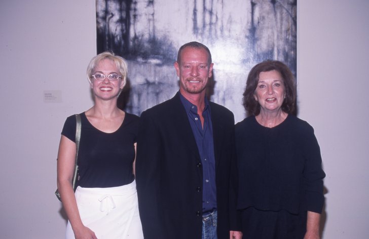 Peter. D. Stephens (center) with Associate Curator Claire Schneider (left) and a guest at the opening of Fresh: Recent Acquisitions (September 8–October 21, 2001) on September 7, 2001. Photograph by Tom Loonan.