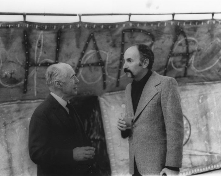 Seymour H. Knox, Jr., and artist Rafael Ferrer at the Members' Preview for Rafael Ferrer - SUR on November 14, 1977. Image courtesy of the Albright-Knox Art Gallery Digital Assets Collection and Archives, Buffalo, New York.