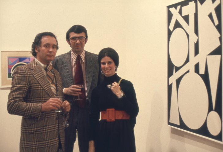 Artist Robert Indiana with Mr. and Mrs. Kaplan at the Members' Preview for Auguste Herbin: The Plastic Alphabet on January 15, 1973. Image courtesy of the Albright-Knox Art Gallery Digital Assets Collection and Archives, Buffalo, New York.