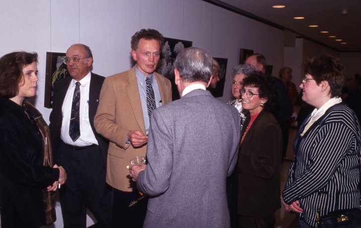 Artist Russell Drisch (in brown jacket) at his Members' Gallery Opening in 1994. Image courtesy of the Albright-Knox Art Gallery Digital Assets Collection and Archives, Buffalo, New York.