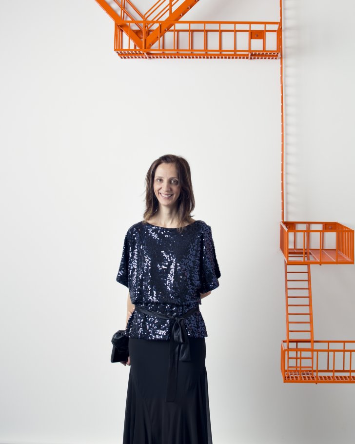 Sandra Cinto at the gala celebrating DECADE: Contemporary Collecting 2002–2012. (Sarah Sze's Second Means of Egress (Orange), 2004, is on the right.) Photograph by Luke Copping.