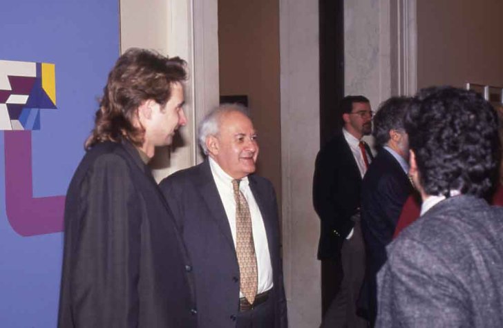 Seymour Drumlevitch (center) at the opening of his 1988 exhibition. Image courtesy of the Albright-Knox Art Gallery Digital Assets Collection and Archives, Buffalo, New York.