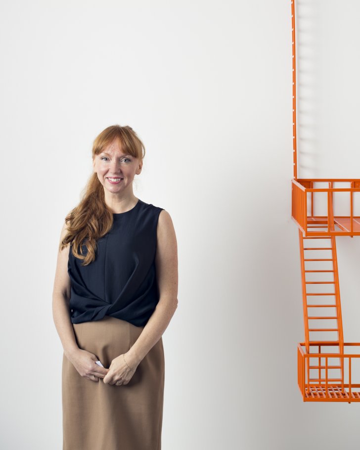 Susan Philipsz at the gala celebrating DECADE: Contemporary Collecting 2002–2012. (Sarah Sze's Second Means of Egress (Orange), 2004, is on the right.) Photograph by Luke Copping.