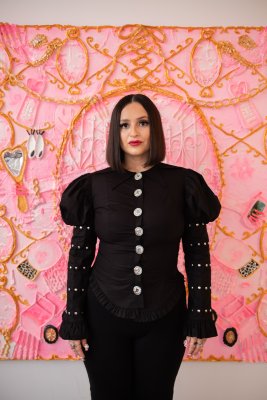 Yvette Mayorga (b. 1991) is a Chicago-based multidisciplinary artist known for her Rococo-inspired reliefs that merge confectionary labor with found images to explore themes of belonging. As a first-generation Latinx artist, she makes pink-dominated work that celebrates femme power while questioning the allure of consumer culture and the American Dream. Mayorga’s work has been shown in group exhibitions at the Museum of Arts and Design, New York, and the Vincent Price Art Museum, Monterey Park, California, and she has had solo exhibitions at The Aldrich Contemporary Art Museum, Ridgefield, Connecticut (2024), and The Momentary at Crystal Bridges Museum of American Art, Bentonville, Arkansas (2022). Her works are in the collections of 21c Museum Hotels, Louisville, Kentucky; Crystal Bridges; El Museo del Barrio, New York; and the City of Chicago’s permanent public art collection at O’Hare International Airport. She has been featured in Artforum, ARTnews, DAZED, and many other publications.