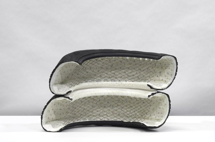 The juxtaposition of your soft interior, but there's like a—there's like a fence on the outside and the fence is less inviting than the inside, you know, and then it being made of car tire, which are, to me, notoriously toxic—like you can't, you can't actually use the car tire to garden I found out recently, because the materials seep from the tire into the soil. So you kind of have—you took this thing that's a petroleum object, lined it with something soft and something nice, and then created this fencing on the outside, which is also kind of cautionary. In a way, you can kind of see it being representative of an internal—someone's internal world, right? Someone's internal frame of mind. Maybe there's a little bit of “I want you to know me, but I kind of also want you to be cautious.” Maybe that's just my take.